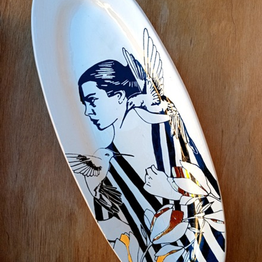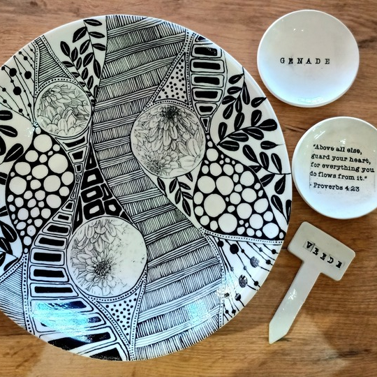 Amoret Ferreira is a South African ceramic artist and designer — the founder and creative force behind Create Ceramics, a studio known for its handmade ceramic art and jewelry inspired by the landscapes of the Kalahari, Karoo, and Western Cape fynbos. Her work often combines natural textures, organic forms, and delicate hand-painted details, blending fine art with functional design.