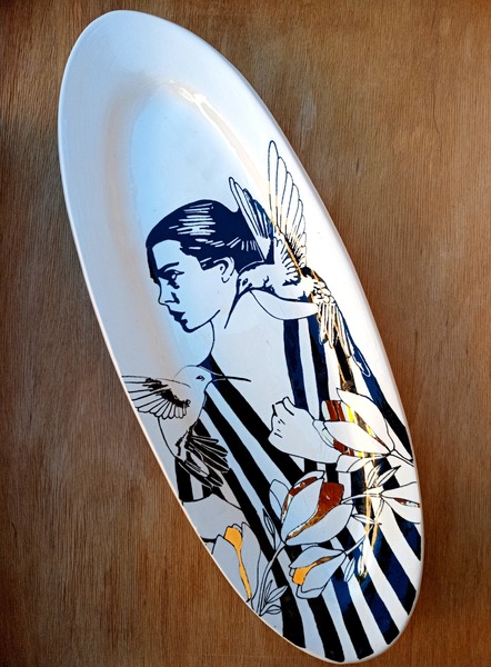 All platters are once-off pieces of art, carefully painted by hand and adorned with 24ct gold lustre. Availability indicated next to title. Available pieces to ship immediately.