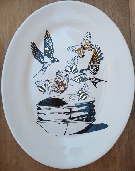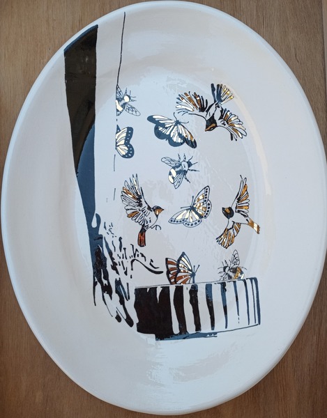 All platters are once-off pieces of art, carefully painted by hand and adorned with 24ct gold lustre. Availability indicated next to title. Available pieces to ship immediately.